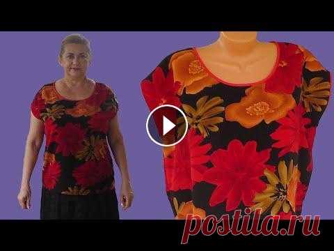 Как сшить летнюю блузку быстро Шьем летнюю блузку без выточки со спущенным плечом. Обзор готового изделия...