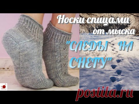 Носки спицами от мыска "СЛЕДЫ НА СНЕГУ".