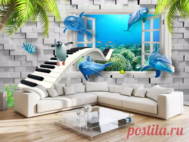 (1) 3D Dolphin Penguin Piano 176 | AJ Wallpaper