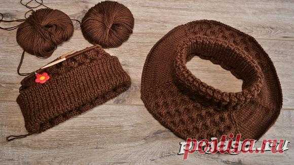 Шапочка и снуд для девочки спицами. Комплект, шапочка и снуд, связан спицами. Шапочка двойная. Подклад связан лицевой гладью из той же пряжи. Размер шапочки 55 -58. Высота шапочки 23 см. Помпон – песец.
