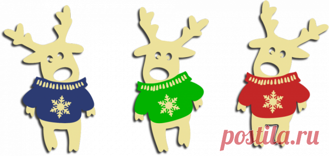 Купить новогоднюю игрушку олень в свитере из дерева