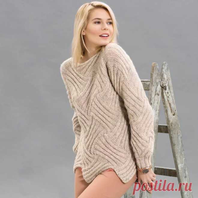 Интересный пуловер косами