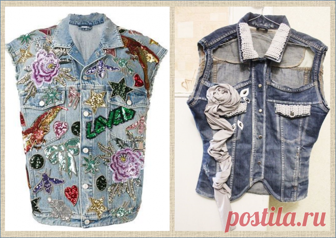 Переделка: джинсовый жилет из джинсовой куртки или рубашки - 50 примеров отделки в коллажах | МНЕ ИНТЕРЕСНО | Яндекс Дзен