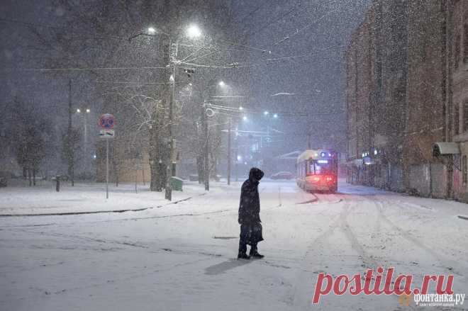 Снег в Петербурге ночью в феврале, фото - 14 февраля 2025 - ФОНТАНКА.ру