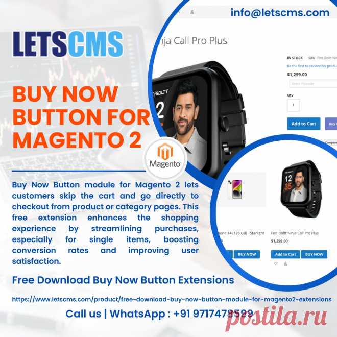 Free Download - Buy Now Button module for Magento 2 lets customers skip the cart and go directly to checkout from the product or category pages. This free extension enhances the shopping experience by streamlining purchases, especially for single items, boosting.''