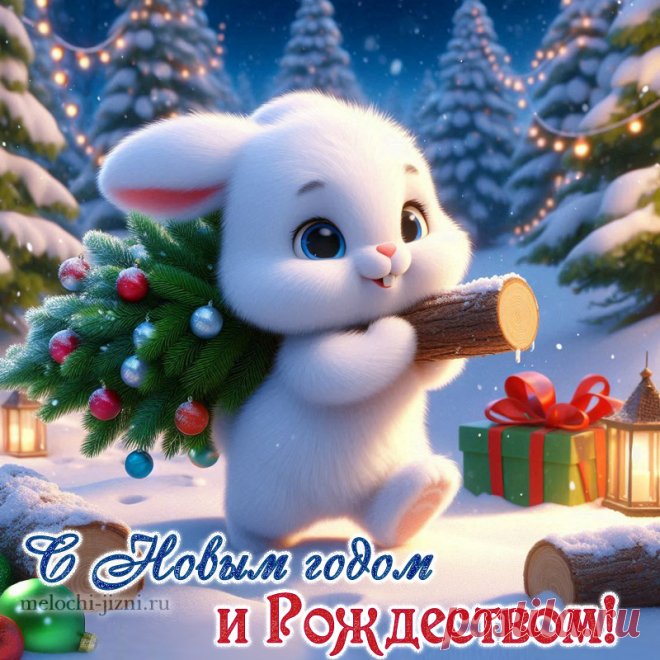 Поздравление с Новым годом и Рождеством открытка, картинка с зайчиком