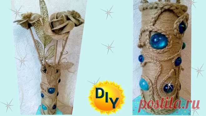 DIY Рукоделие мастер-класс ваза из джута, мешковины и бросового материала декор для дома