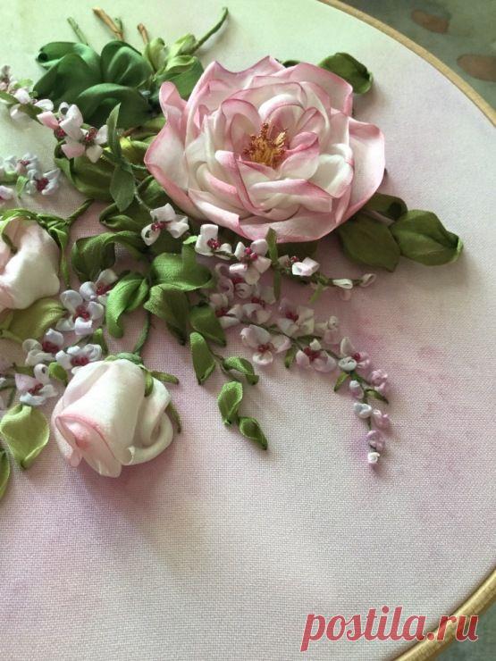 Мини МК по ВЫШИВКЕ ЛЕНТАМИ бутона розы
