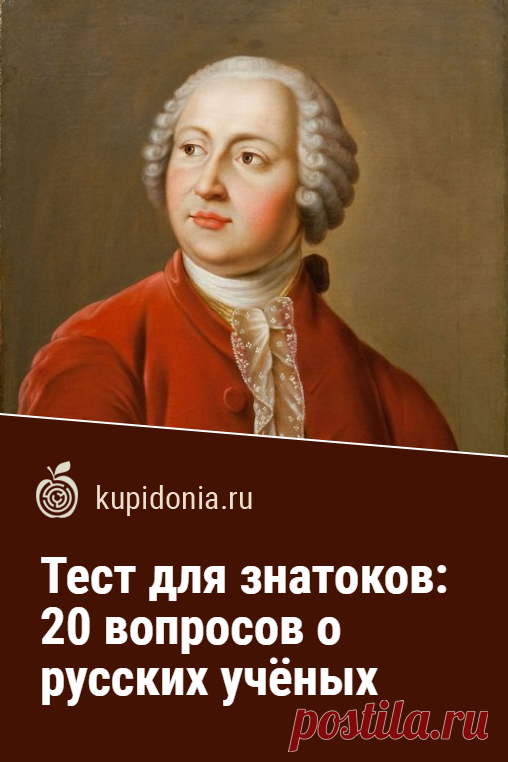 Тест для знатоков: 20 вопросов о русских учёных. Великие русские учёные, такие как Ломоносов, Менделеев, Павлов и многие другие, внесли огромный вклад в мировую науку, в разных её областях. Тест о них, который вы можете пройти на нашем сайте, состоит из 20 вопросов. Проверьте свои знания!