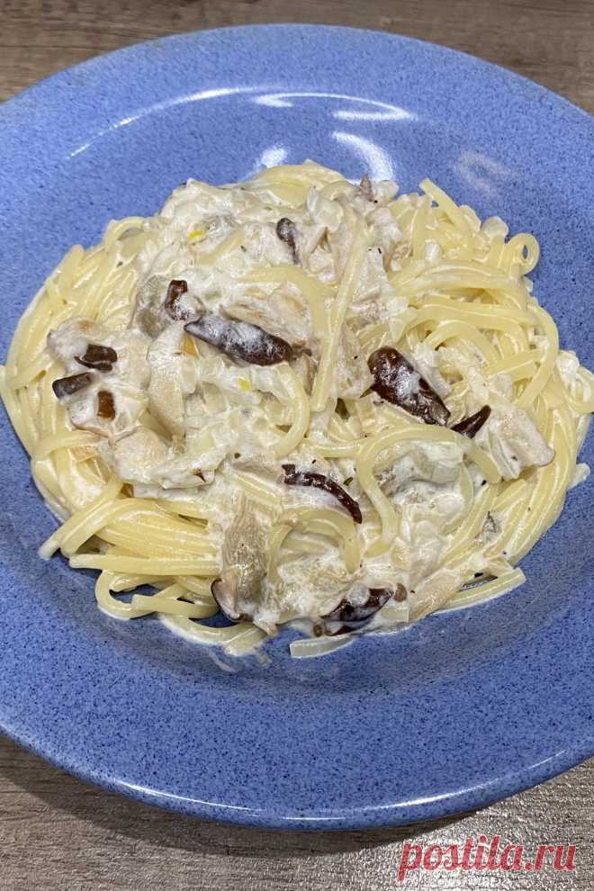 Спагетти с грибами в сливочном соусе