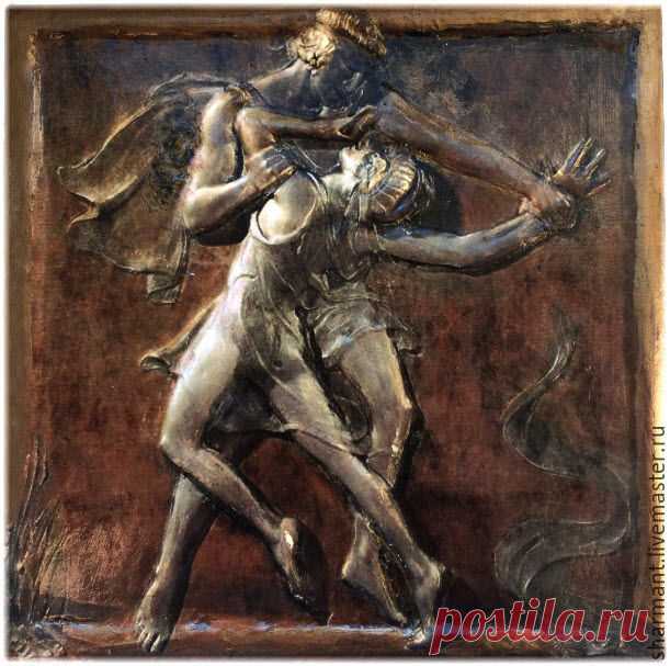 Интерьер в стиле модерн. Декоративные плитки керамические в стиле арт деко. Выпуклое изображение танцующей пары в греческих туниках будет отлично смотреться в едином интерьере, например, в ванной комнате, гостиной, столовой.