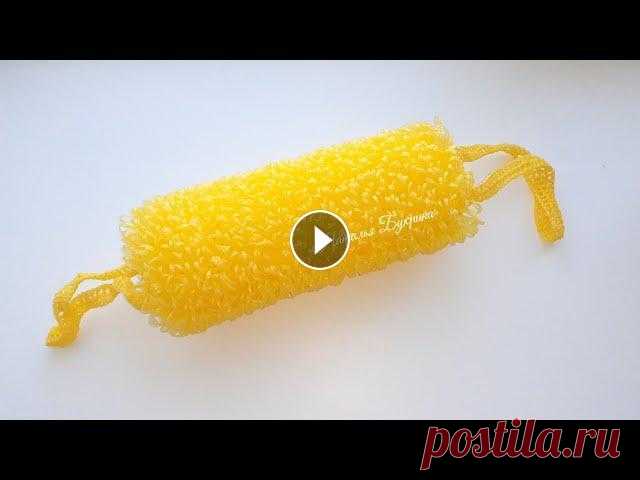 Мочалка крючком. Быстрый, простой, экономичный способ. Мочалка крючком вытянутыми петлями. Всем привет, в этом ролике необходимый аксессуар для ванной комнаты. Мочалка крючком выполняется. столбиками с одн...