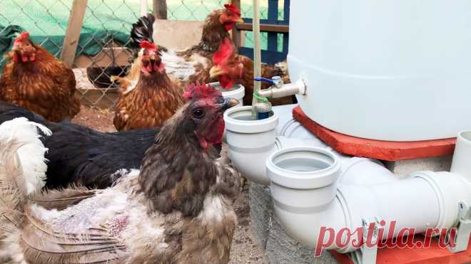 Автоматическая поилка для домашней птицы из канализационных тройников и колен Куры, гуси, утки и прочая домашняя птица нуждается в постоянном поении. Если в качестве поилок применять просто мисочки или корыта, то доливать их придется ежедневно. Освободить себя от этих забот очень просто – нужно уделить полчаса, и сделать простую автоматическую поилку с большим баком для ее