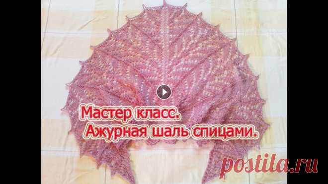 Ажурная шаль спицами. Мастер класс Олеси Данилюк Вяжем шаль спицами из пряжи Lana Grace Superfine.В МК предлагается схема вязания ажурной шали от угла и пошаговое выполнение узора .Показываются спосо...