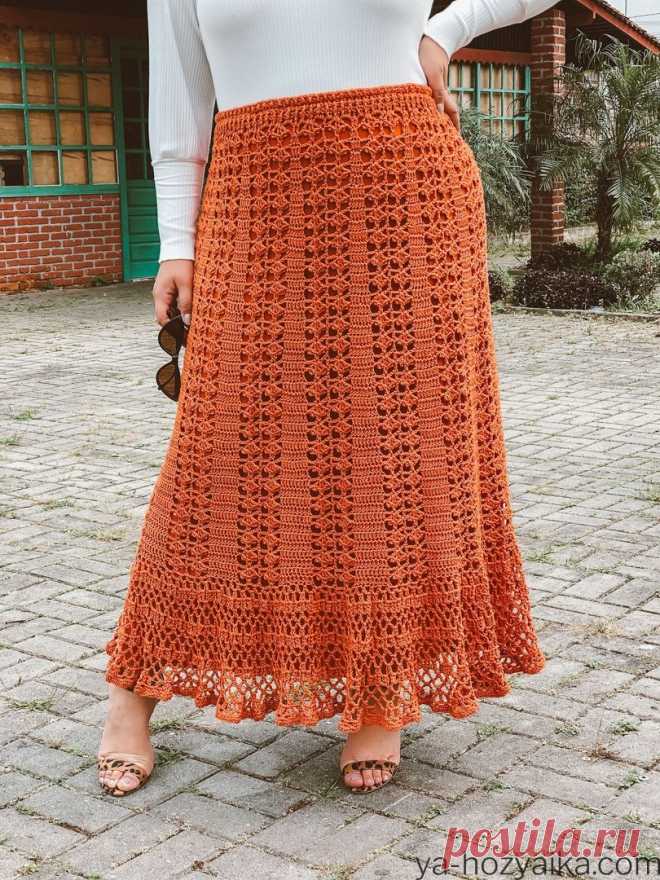 Юбки вязаные крючком 2021. Расклешенная юбка крючком схемы Вам потребуется пряжа (100% хлопок, 280м/50гр) – около 500 гр фиолетового цвета, крючок № 1,7, маркеры для вязания.Юбка вяжется сверху вниз по кругу без швов патентными столбиками (они чуть выше обычных, см.рисунок). Можно вязать обычными столбиками, тогда кайму юбки нужно связать длиннее.