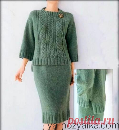 Костюм юбка и свитер спицами. Вязаные костюмы с юбкой схемы