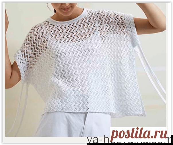 Летнее пончо спицами. Пончо спицами из двух прямоугольников Ажурное летнее пончо связанное двумя прямоугольными полотнами, с небольшим цельновязанным рукавчиком, который оформлен открытой с каждой стороны подгибкой для кулиски.