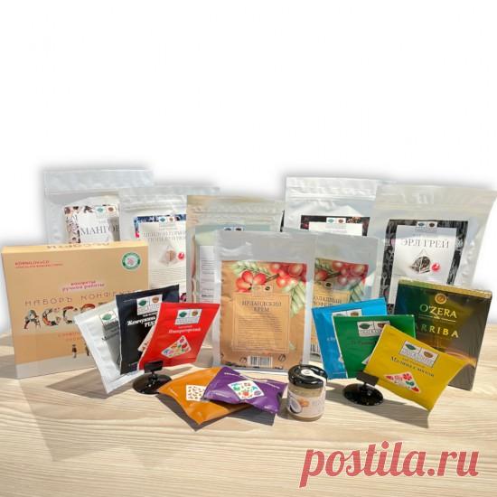 (Чай в пирамидках: 100 гр. Чай белый байховый крупнолистовой с ароматом бергамота; Чай чёрный рассыпной листовой с ароматом малины; Кофе натуральный жареный молотый в зернах; Кисель ягодный; Конфеты в шоколаде; Цукаты ананаса из сахарного сиропа в сахаре (в коробке 60 шт.);
