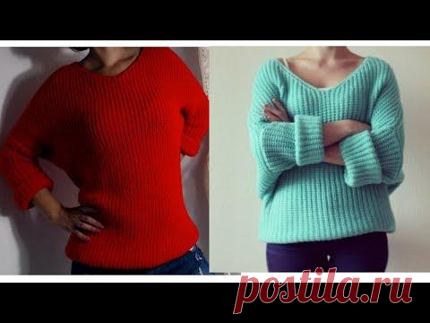 Очень простой и красивый пуловер. Как связать без схем. Модель свитера (фото) увидела в интернете, интерпретация и расчеты мои. Извините за оговорки. Конечно, речь идет о дополнительных укороченных рядах. #...