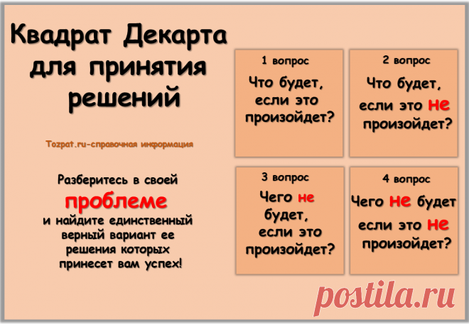 Квадрат Декарта для принятия решений, пример - Tozpat.ru