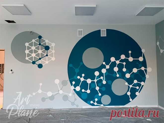 Интересный заказ: роспись стен в московской IT-школе, для старшеклассников. Это был объемный проект – 45 кв.м, и очень кропотливая работа.