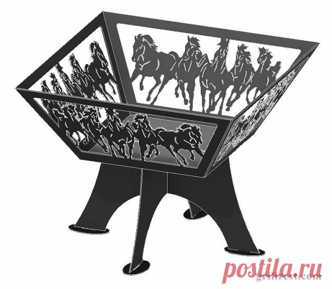 Скачать макет (чертеж) костровой чаши-мангала "Кони" в формате CDR и DXF