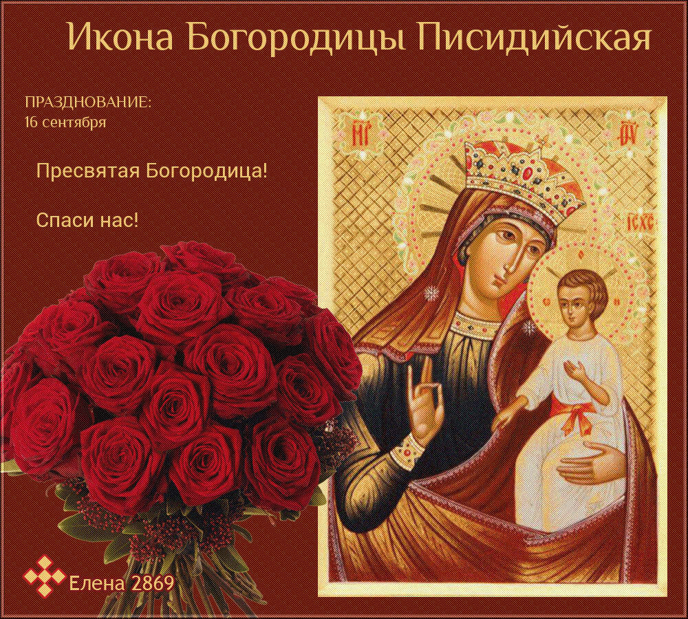Писидийская икона Божией Матери — это древний образ, прославившийся чудесами с VI века в городе Созополе Писидийском (современная Турция). Икона была написана в стиле Одигитрии, а ее празднование приходится на 16 сентября по новому стилю