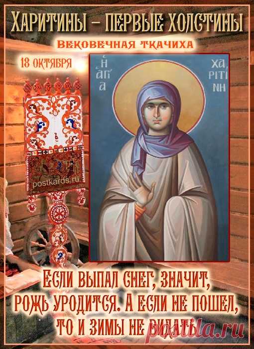 Праздник Харитины — Первые холстины отмечается 18 октября в память святой Харитины Амисийской. В народной традиции этот день символизировал начало подготовки к зиме: пряли нити, ткали холсты, женщины устраивали посиделки с рукоделием. Считалось, что Харитина помогает рукодельницам и оберегает дом от бед. В этот день желали тепла, уюта и мирного быта. Поздравьте близких с этим тёплым осенним праздником — выберите красивую открытку из нашей подборки и подарите частичку душевного тепла.