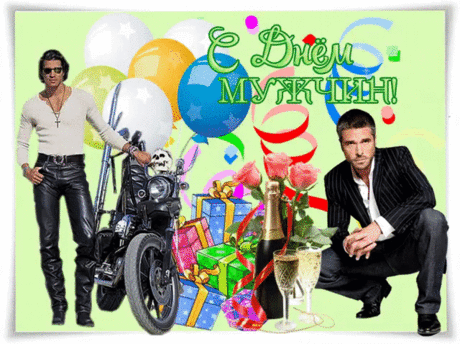 Мужчины, ваш сегодня день, И праздник, всё в одном флаконе! Так принимайте поскорей, Вы поздравления, пижоны!