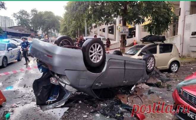 Пять человек чудом выжили, когда неуправляемый грузовик скинул автомобиль с эстакады