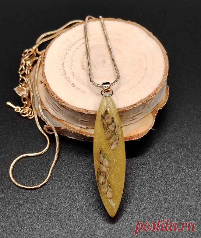 Кулон из эпоксидной смолы с настоящими растениями (колос)