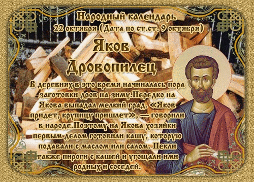 Народно-христианский праздник Яков Дровопилец отмечается 22 октября. В православных храмах в этот день чтят память Иакова Алфеева - одного из 12 апостолов Иисуса Христа.