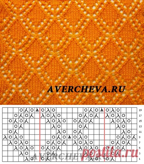 Узор ажурные ромбы спицами с описанием | АЖУР - схемы узоров