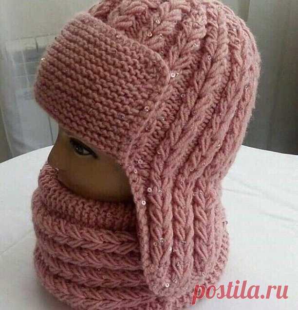 Шикарная ушанка спицами