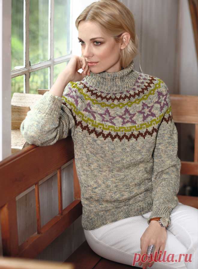 Вязание спицами. Меланжевое пончо-накидка с накладным карманом | Умелые ручки