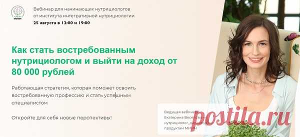ВЕБИНАР ДЛЯ НАЧИНАЮЩИХ НУТРИЦИОЛОГОВ 25 августа Расскажем, как стать востребованным нутрициологом и выйти на доход от 80 000 рублей. НЕ ПРОПУСТИТЕ !!!