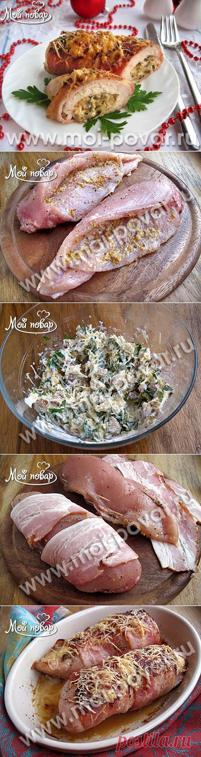 Новогодние «кармашки» из куриной грудки с сыром и беконом - кулинарный рецепт.