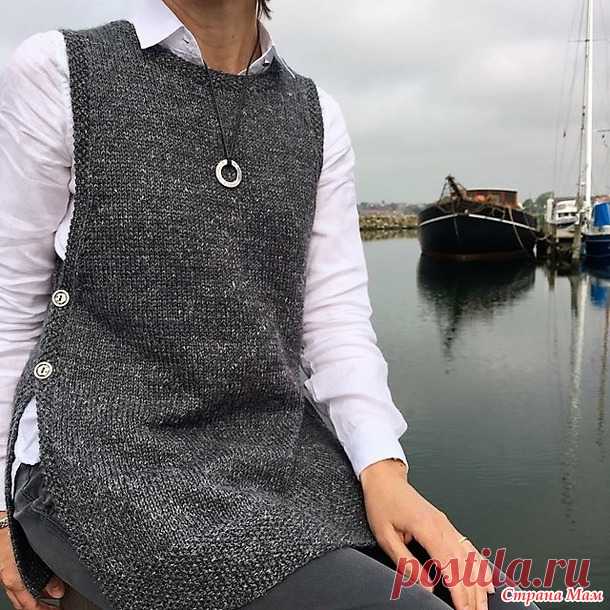 Ажурная кайма, оригинальная горловина позволяют назвать тунику нарядной, а серо-голубой цвет позволит появится на работе, в офисе.