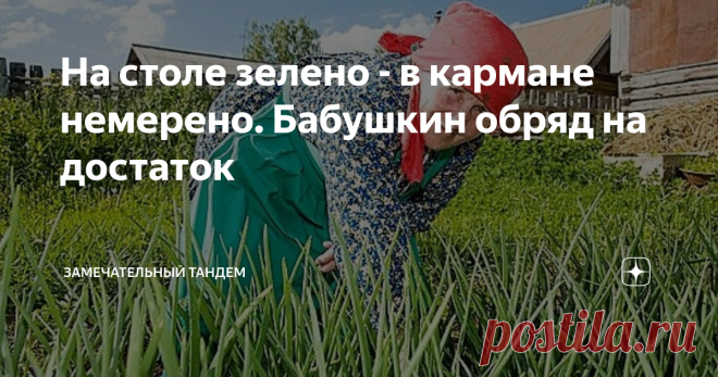 На столе зелено - в кармане немерено. Бабушкин обряд на достаток Всем привет, милые друзья! Когда лето в самом разгаре, как же не воспользоваться его щедрыми и вкуснейшими дарами для привлечения счастья и достатка? И бабушки наши знают очень много таких чудо - ритуалов для привлечения денежного изобилия с помощью разных продуктов и кушаний. Вот, например, бабушка моей приятельницы Аллы поведала ей как-то такой вот ритуал волшебный, и она историей этой