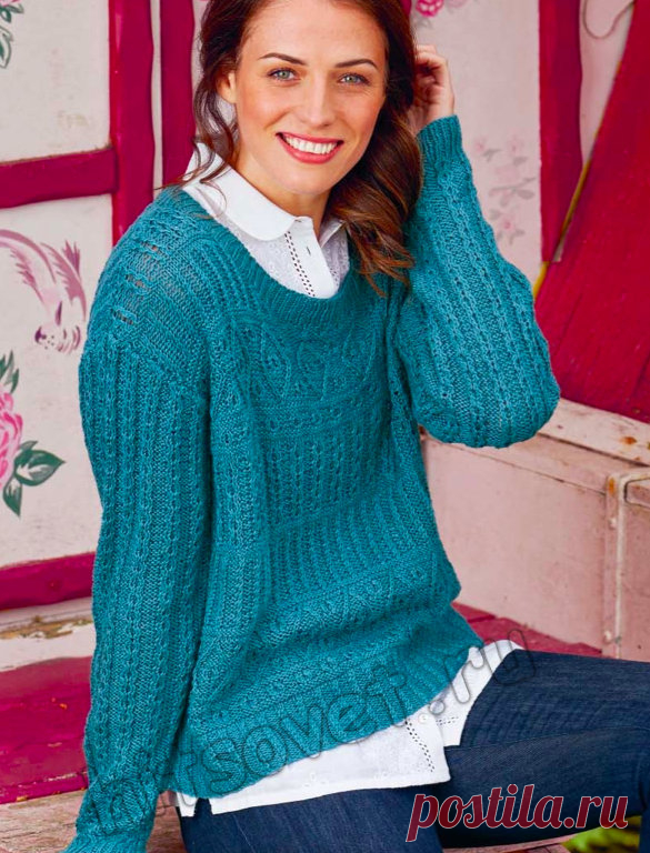 Ажурный пуловер с широким воротником (Вязание спицами) — Журнал Вдохновение Рукодельницы
