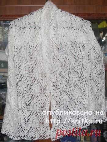 Белый ажурный палантин спицами. Работа Елены, Вязание для женщин Для него пришлось перепробовать несколько узоров, прежде чем подобрался подходящий. И вот такой получился палантин. Нитки использовала SAL SIM (акрил с