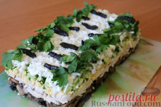 Рецепт: Слоеный салат «Белая береза» с курицей и черносливом на RussianFood.com