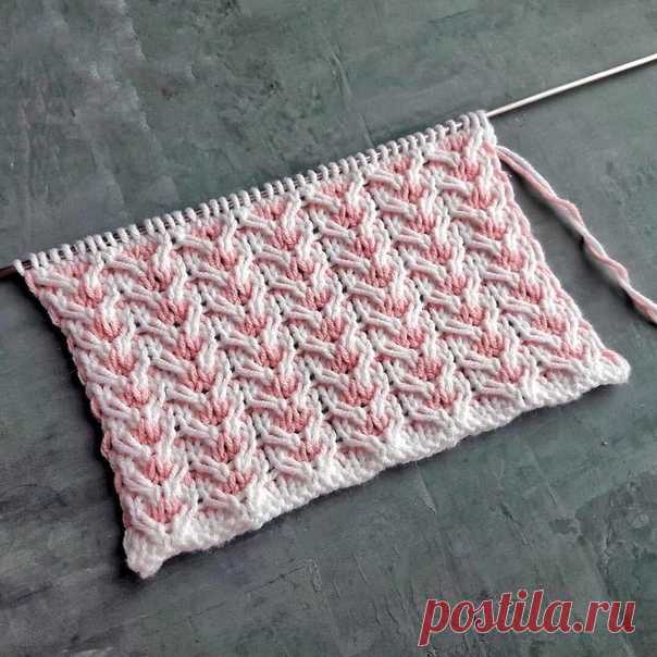 Прекрасный узор "цветные объемные дорожки" спицами! Очень красивый двухцветный узор спицами. Раппорт 2 петли и 10 рядов.