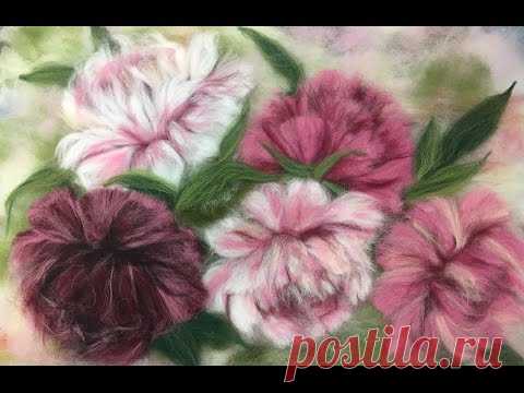 ПИОНЫ -- ЖИВОПИСЬ ШЕРСТЬЮ / FELTING of PICTURE / HOW TO MAKE A PICTURE of WOOL