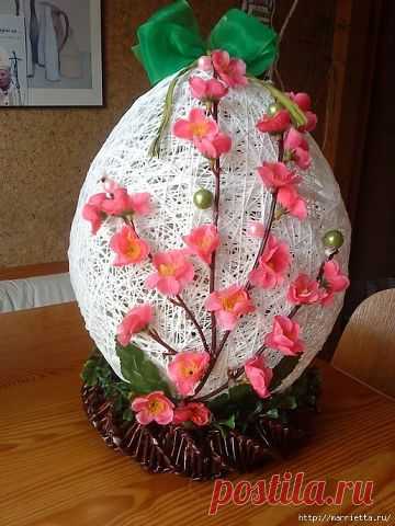За день до Пасхи возьмите ПВА и нитки, чтобы превратить их в красивую пасхальную композицию