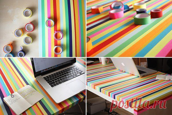 Апгрейдим свой стол в цветную зебру с помощью цветного скотча