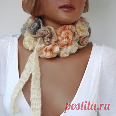 КАК СВЯЗАТЬ НЕЖНЫЕ РОЗЫ КРЮЧКОМ. Романтичный шарфик из нежных роз