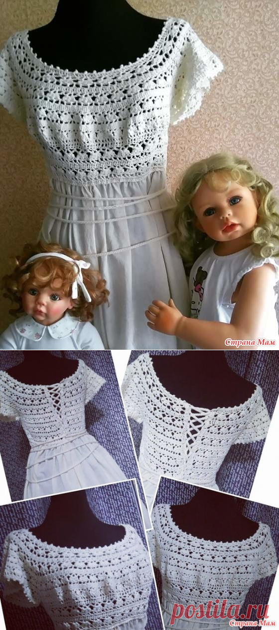 Платье - сарафан, выполнено в комбинированном стиле ткань +крючок из хлопка и льна. - ВЯЗАНАЯ МОДА+ ДЛЯ НЕМОДЕЛЬНЫХ ДАМ - Страна Мам