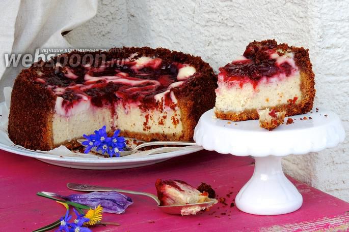 Чизкейк «Нью-Йорк» с вишнёвым конфитюром.