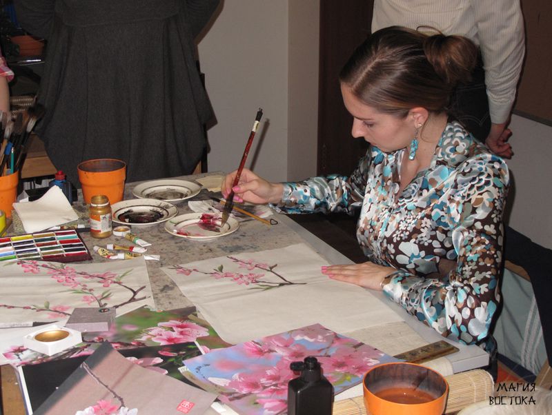 Цветущий персик в японской живописи.  с урока Александры Васильевой | Магия Востока
